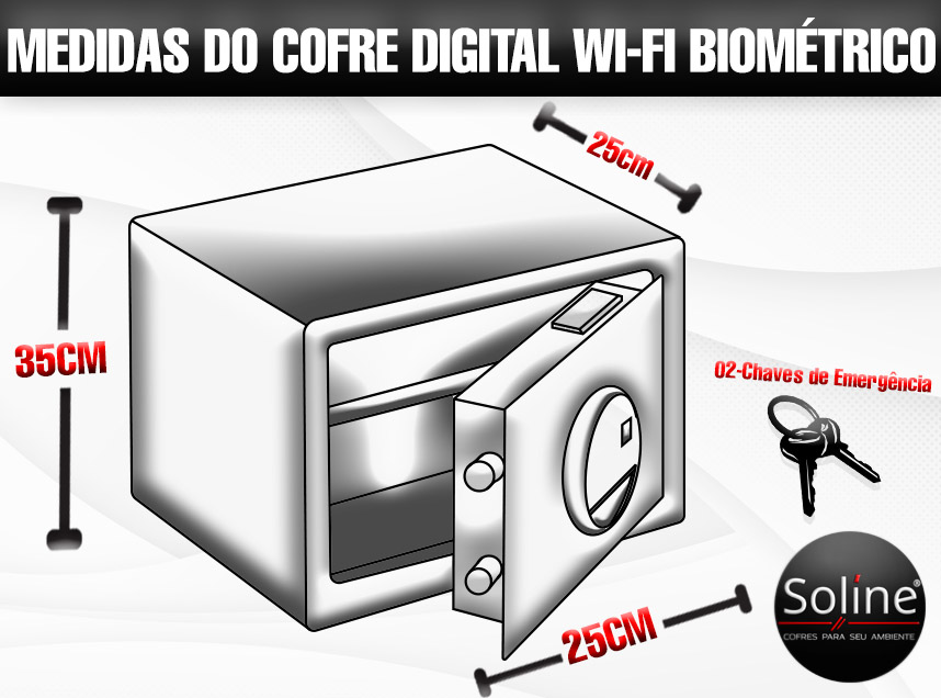 O cofre acompanha manual de instruções e 2 chaves de emergência, garantindo segurança e praticidade no uso diário.